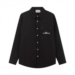 가슴 포켓 자수 커플 캐주얼 셔츠 긴팔