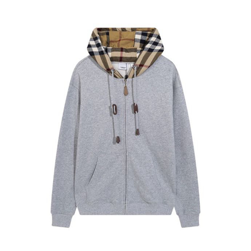 체크 무늬 긴팔 후드 스웨터 그레이 남여 공용