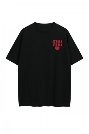 아플리케 자수 하트 레터링 반팔 티