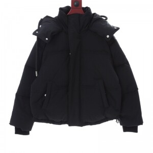 순색 후드 다운 점퍼 코트 블랙