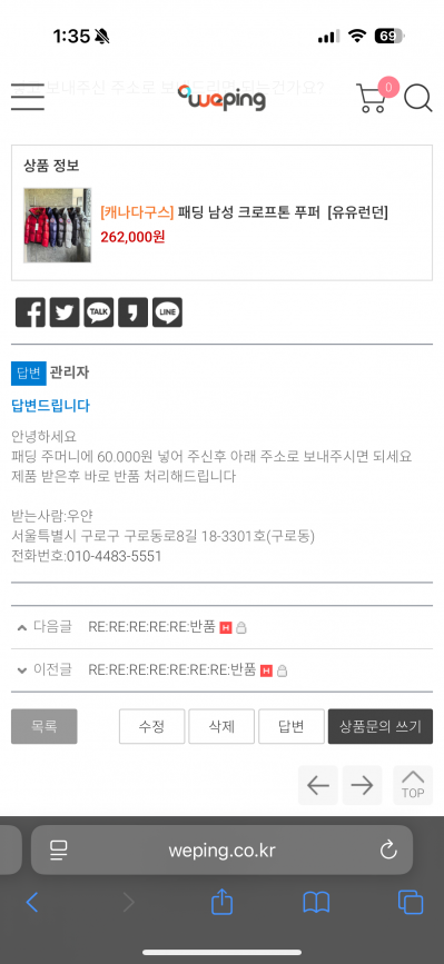 [반품 문의]