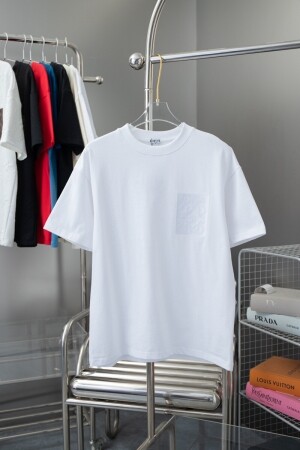 자수 커플 반팔 티 화이트
