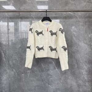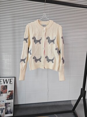 강아지 자수 니트 카디건 스웨터