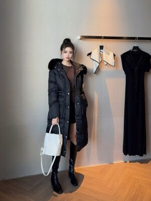 롱 구스패딩 너구리퍼