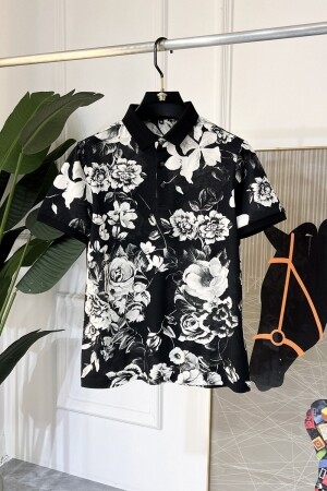 블랙 플라워 프린트 폴로 셔츠 남자 반팔