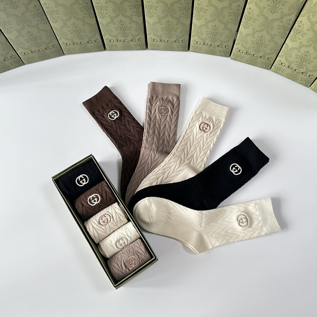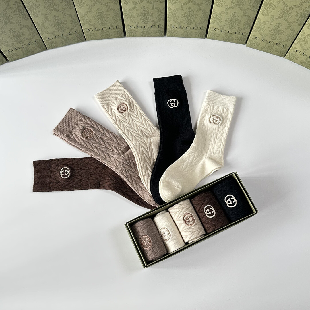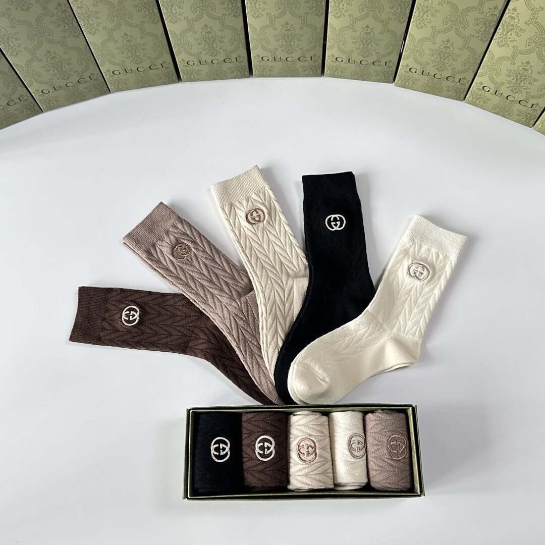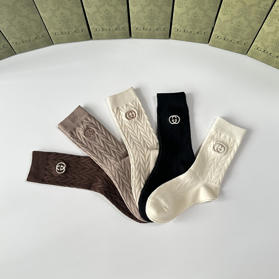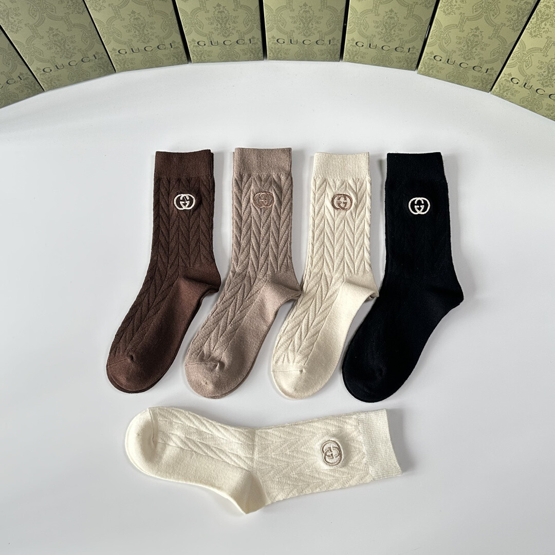 Gucci 新款羊绒刺绣中筒袜!每包五双,店内有配套袜子出售,是时尚达人必备的街头潮流单品。