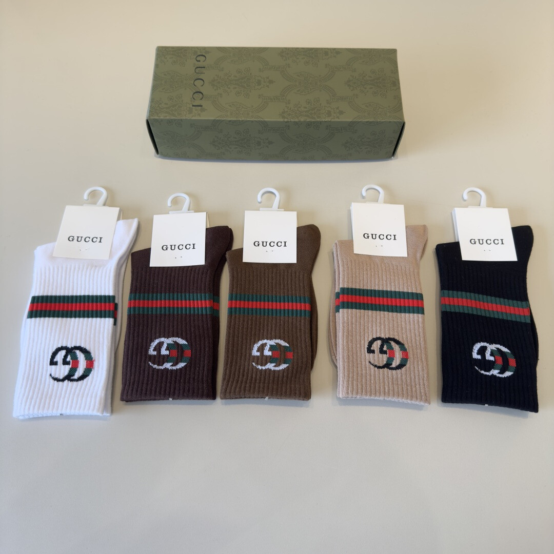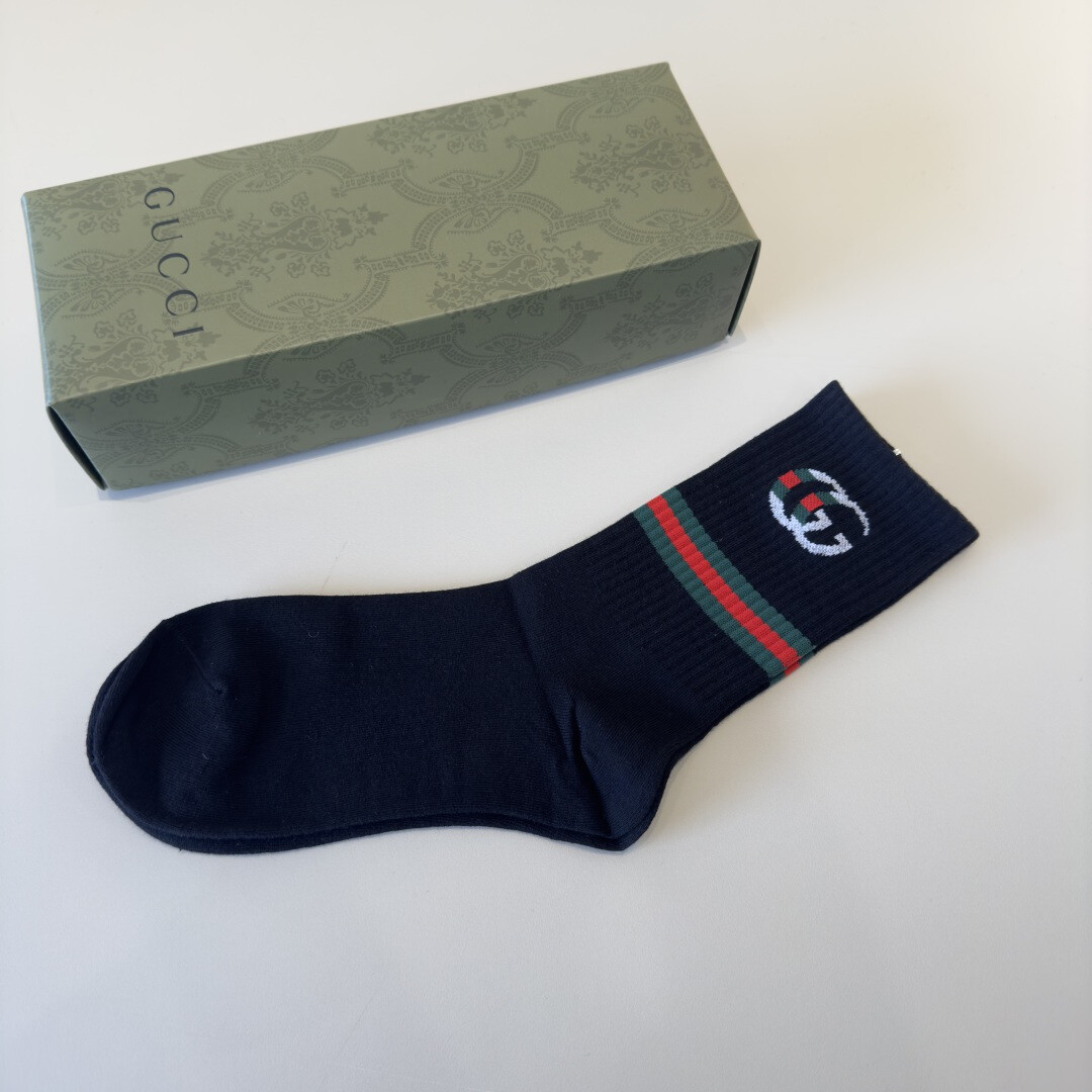 (Gucci)新款中长袜,适合初秋穿着。经典设计,优雅风格!当知名品牌登上街头时,时尚达人自然必不可少,而且百搭各种颜色。(每包五双)