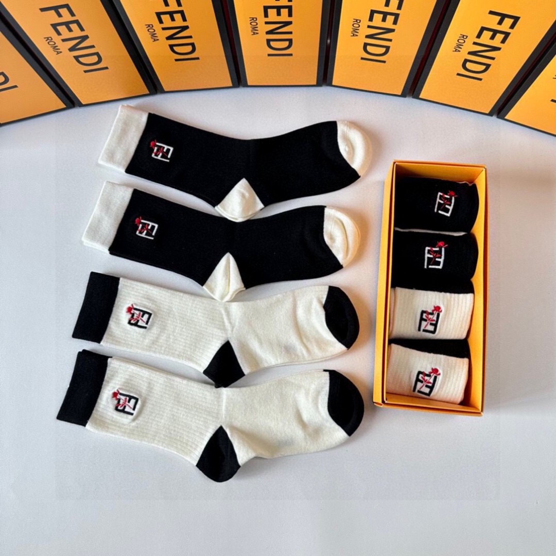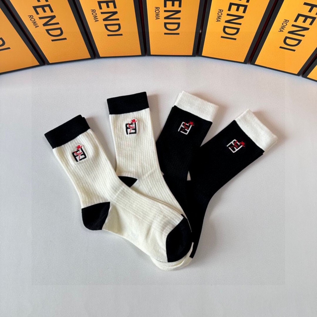 Fendi新款中长款刺绣假人袜!每盒四种颜色。