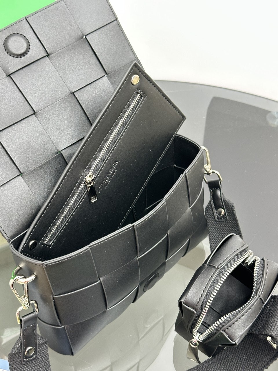 보테가 베네타 멀티 카세트백 (741777 V2XU1 8803)• 사이즈: 23 x 15 x 5 cm• 컬러: 블랙보테가 베네타의 상징인 큼직한 카세트 위빙 디자인이 적용되어 별도의 로고 없이도 고급스러움과 브랜드 정체성을 확실히 드러냅니다. 유행을 타지 않는 타임리스한 디자인입니다.