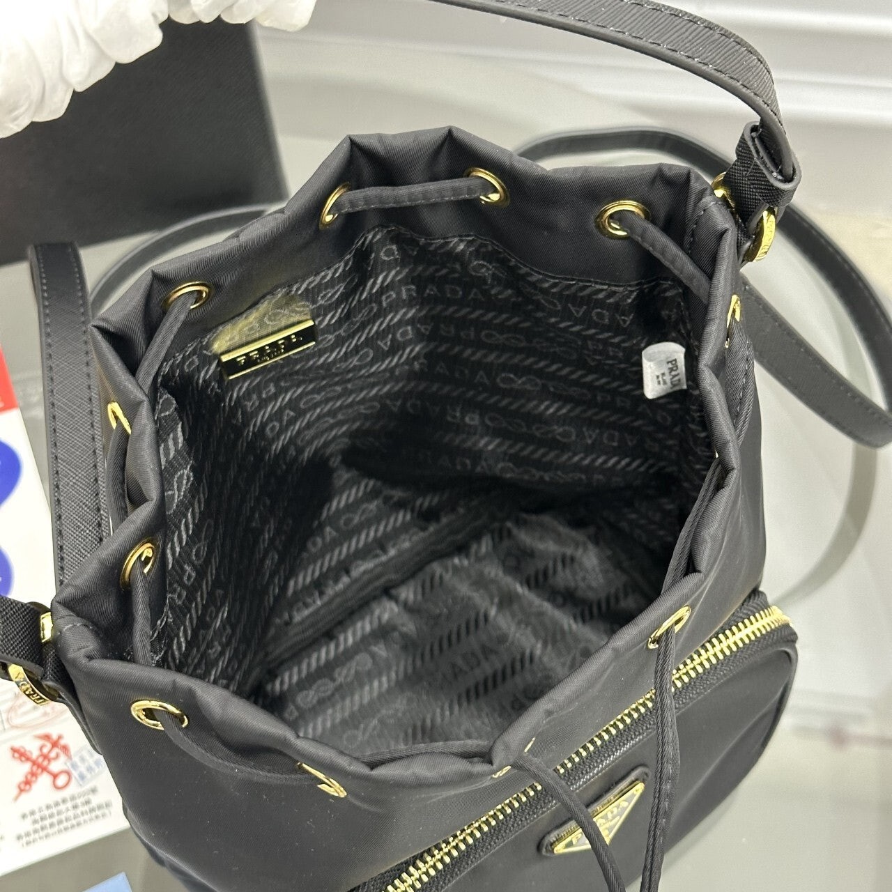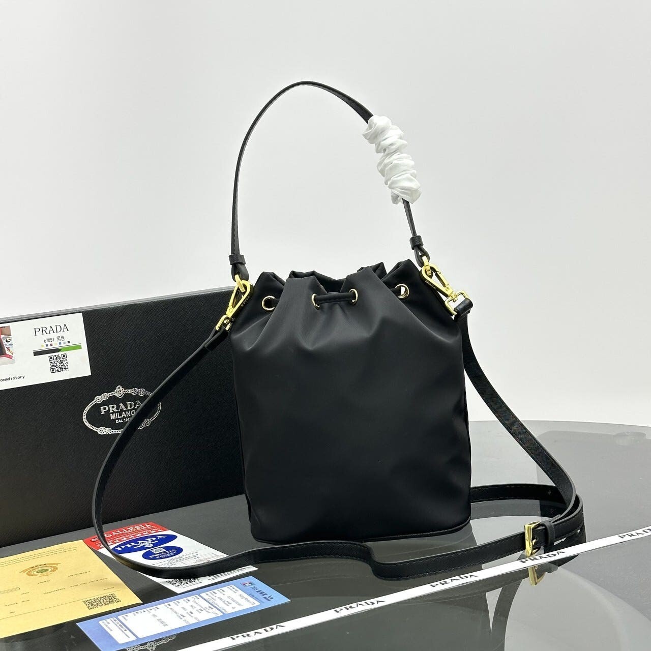 프라다 듀엣 리나일론 버킷 백 (1BH038_RV44_F0002_V_UOP)• • 사이즈: 22.5 x 17.5 x 12 cm • 오후 5시 이전 당일배송 제품 • 스튜디오 에서 현물로 촬영한 실사입니다. 현대적이고 기능적인 개성을 담아낸 부드럽고 활용도 높은 디자인의 프라다 듀엣 버킷 백입니다. 리나일론 소재로 제작된 액세서리로 외부 지퍼 포켓이 특징이며, 손으로 들거나 가죽 숄더 스트랩으로 크로스바디 백으로 착용할 수 있습니다